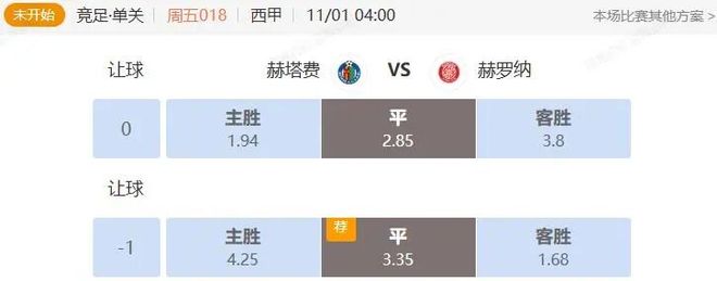 竞足 周五018 西甲 赫塔费VS赫罗纳