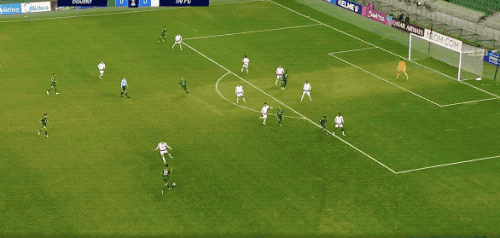 第13分钟,法比奥连续晃动后选择传球,达万的射门打在防守球员身上,弹出底线。